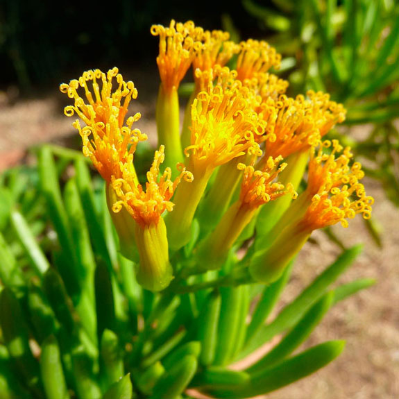 Este es el “Senecio barbertonicus”, conocido por los nombres comunes de "Senecio del Himalaya", “Hierba de Montaña”, “Senecio de Barbeton” o “Sifón de Barbeton”. Es una linda planta suculenta, originaria de Sudáfrica. Crece sobre todo en las praderas rocosas y sabanas en el sur de África, en áreas que van desde Suazilandia y Mozambique, a partes del este de Zimbabue y Sudáfrica, pero también se cultiva en otros lugares del mundo por su resistencia a la sequía.
